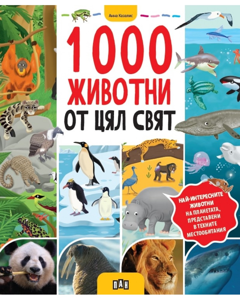 В тази книга ще откриете 1000 животни от цял свят, изобразени в техните естествени местообитания. Тръгнете на пътешествие из континентите, за да се срещнете с дивите обитатели на планетата. Научете най-важното за тях – къде и с кого живеят, с какво се хранят и как са се приспособили към своята среда.