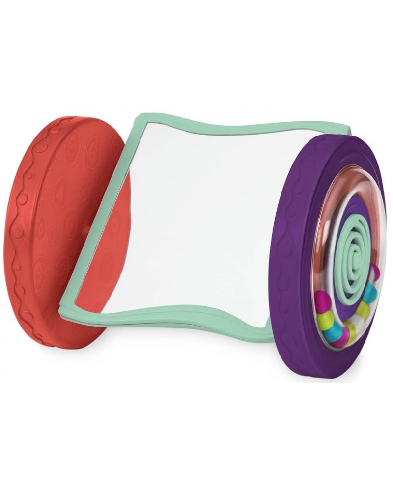 Подвижното огледало за Battat бързо ще привлече вниманието на детенцето с пъстрите си цветове. Играчката остава вертикална при натискане. Двете големи колела държат огледалото изправено, за да се върти на земята. Едното колелце има забавни дрънкащи мъниста, а другото има спираловидно оформление.