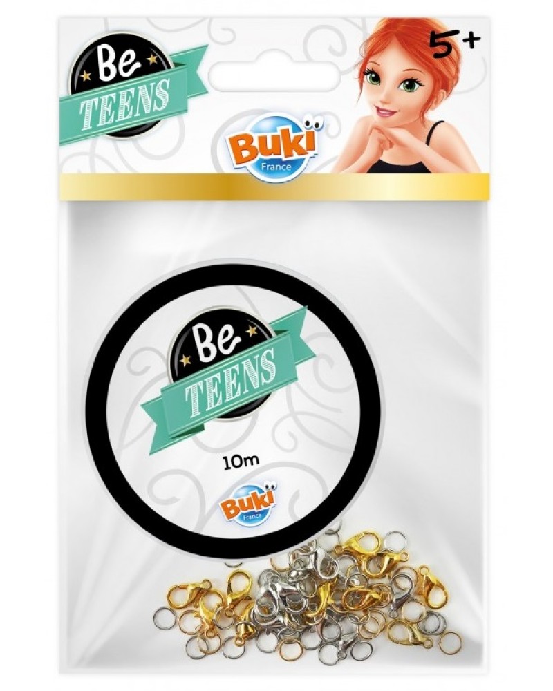 Buki представят един страхотен комплект аксесоари, с който вашето дете ще може да завърши бижутата си. С него всяка гривна или синджирче ще има красив и завършен вид. Комплектът е изработен от висококачествен метал и съдържа:
