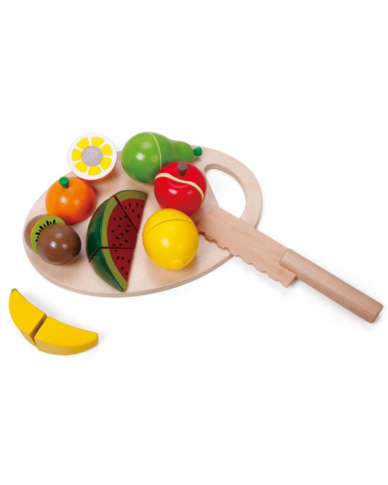 Ние, възрастните, винаги сме смятали, че рязането изобщо не е детска игра и сме карали децата да ни дават приборите, за да се справяме ние с тази задача. Е, сега обаче всичко се променя, защото с помощта на детския комплект на Classic World рязането става забавна игра за учене. На първо място трябва да споменем, че „ножа“ е направен от дърво (както и целия комплект), напълно безопасен е и „реже“ на ужким плодовете. А те са лимон, портокал, ябълка, круша, киви, банан, диня. Те са предварително изработени на части, които са съединени с велкро лепенка. Детето само разделя частите, като така учи плодовете – имената и формите им.