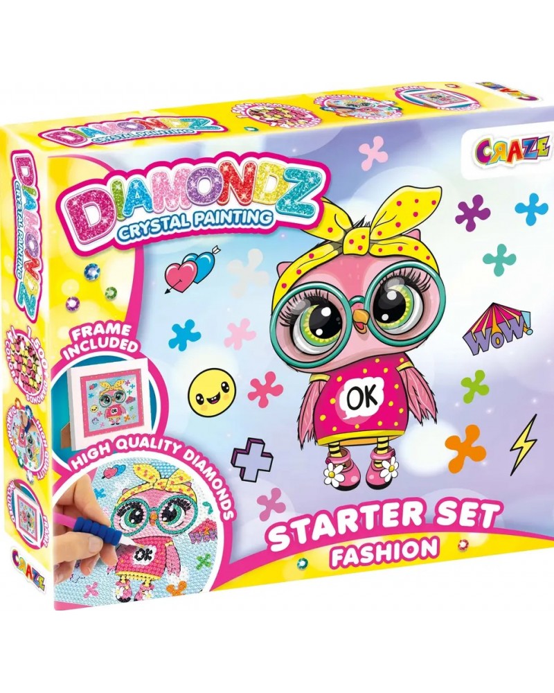 Комплект „Направи си сам“ за създаване на сладко изображение на еднорог с цветни диаманти. Включва бяла рамка и всички необходими инструменти: диаманти, стилус за лесно поставяне на диамантите, шаблон, тавичка и инструкции.
