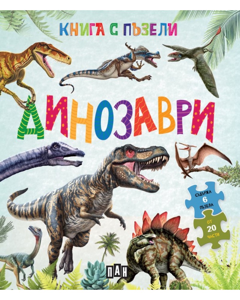 Запознай се с някои от динозаврите, населявали Земята преди милиони години. Научи интересни факти за тях и се забавлявай с пъзелите, които ще намериш на страниците на книгата „Динозаври“.
