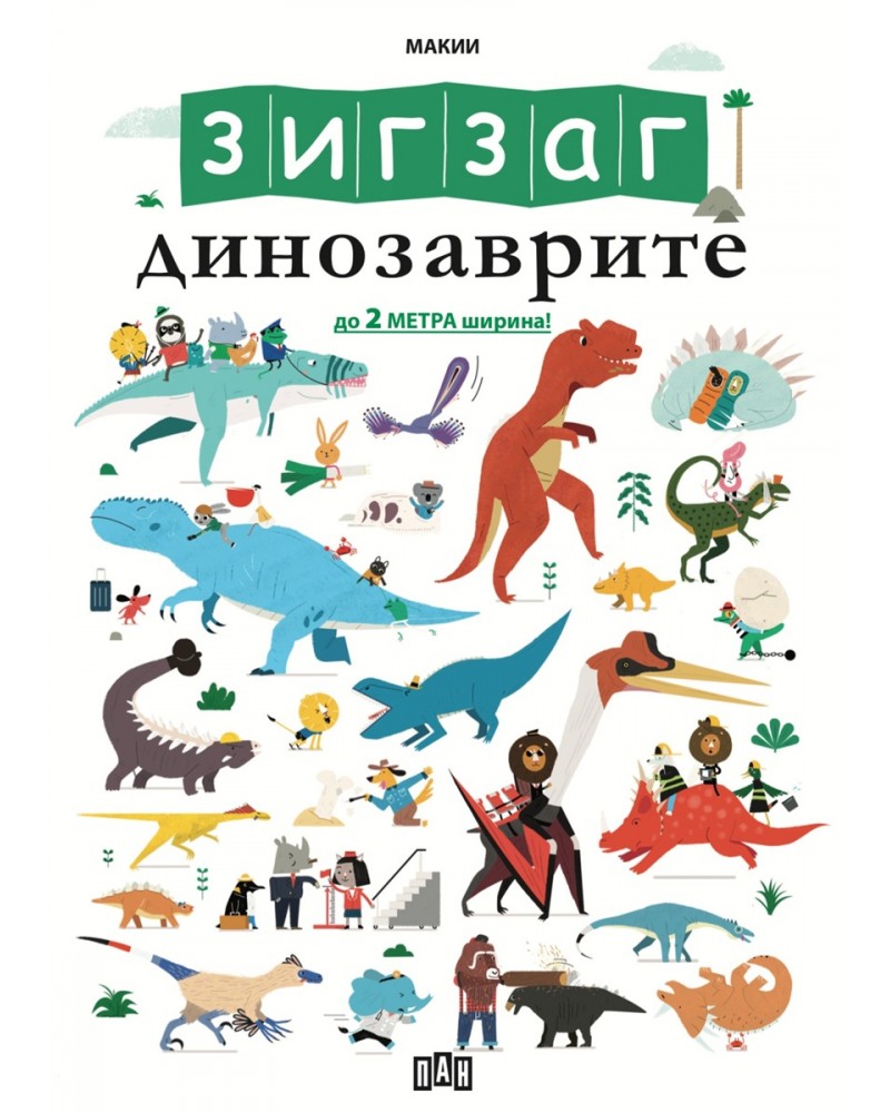 „ЗигЗаг: Динозаврите“ е книжка хармоника с 16 картонени страници, много любопитни факти за динозаврите и безброй „търси и намери“ обекти.