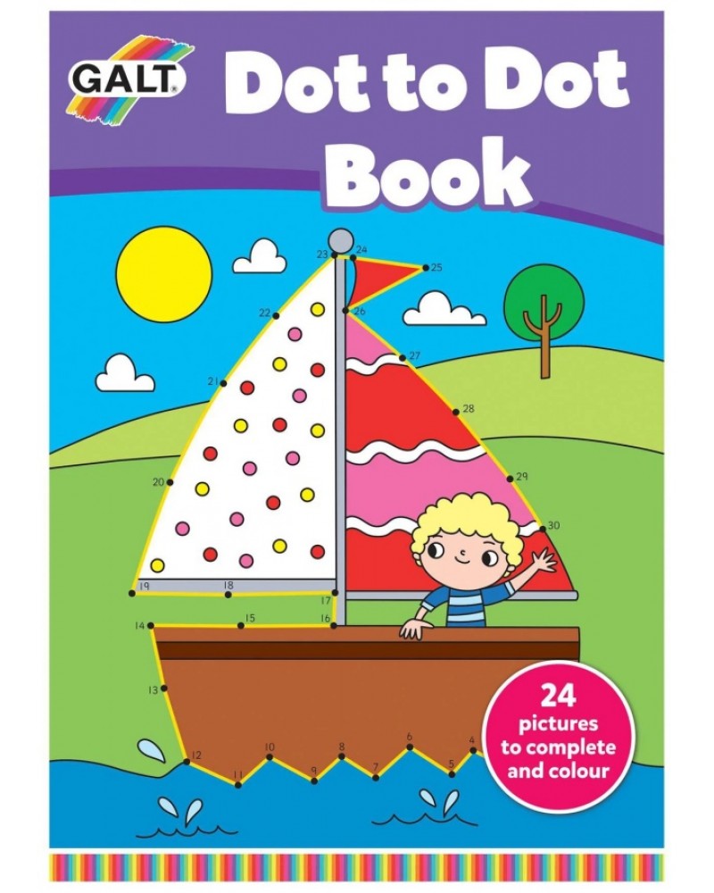 Книжка от Galt е забавна и творческа занимавка, която малчуганите ще обожават. Тя включва 24 картинки за довършване и оцветяване - започни като свържеш точките, а после оцвети получените изображения с моливи или пастели, за да създадеш истински малки произведения на изкуството.