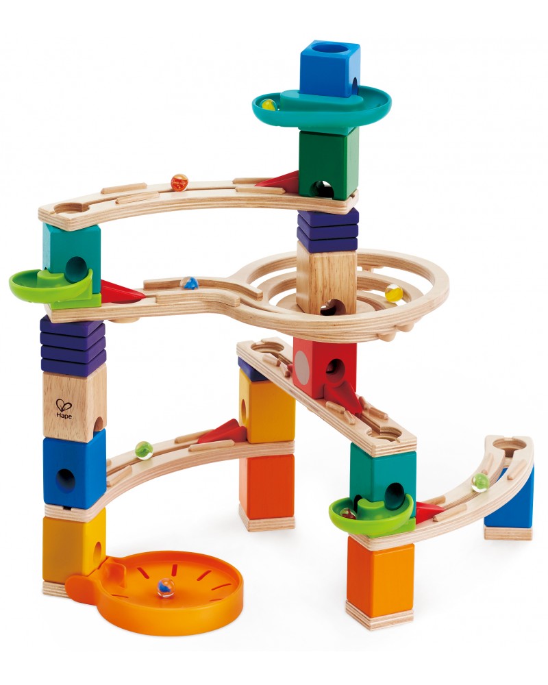 Играта стимулира логическото, последователното и инженерното мислене. Кубчетата са изработени от устойчиво дърво и нетоксични бои на водна основа, което я прави идеалният избор за забавление на цялото семейство. Като един от най-големите производители на дървени играчки в света, Hape Toys се грижат за безопасността на децата, както и за опазването на околната среда. Всички продукти на марката отговарят на европейските стандарти за безопасност и качество EN71, както и на Американското дружество за тестови материали ASTM. Всеки материал се тества в собствена лаборатория на всеки етап от разработването на продукта. Дори пластмасовите елементи се изработват с високо ниво на трайност, за да могат играчките да се предават от деца на деца и от поколение на поколение.