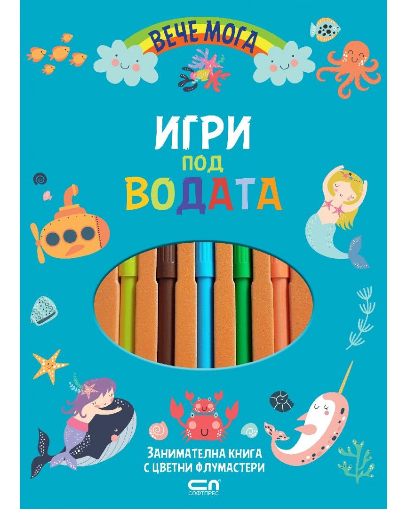 Под водата се крие цял пъстър свят на приключения! Убедете се сами с „Игри под водата“. Използвайки цветните флумастери, включени в книгата, хлапетата ще могат да оцветяват, да решават лабиринти и да откриват разлики, като се забавляват, докато се обучават.