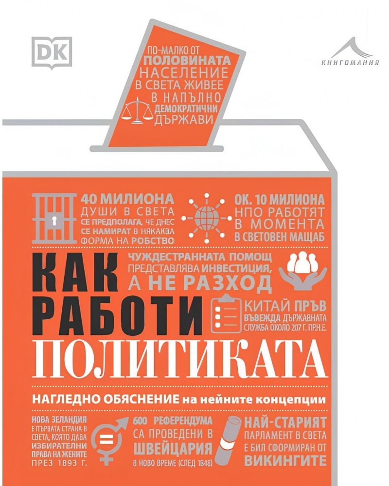 Със своя уникален графичен дизайн и достъпния си език „Как работи политиката” обяснява всичко, което ви е необходимо да знаете за политиката – от политическата теория и системите на държавно управление по света, до масовите движения и пътищата към политически промени.