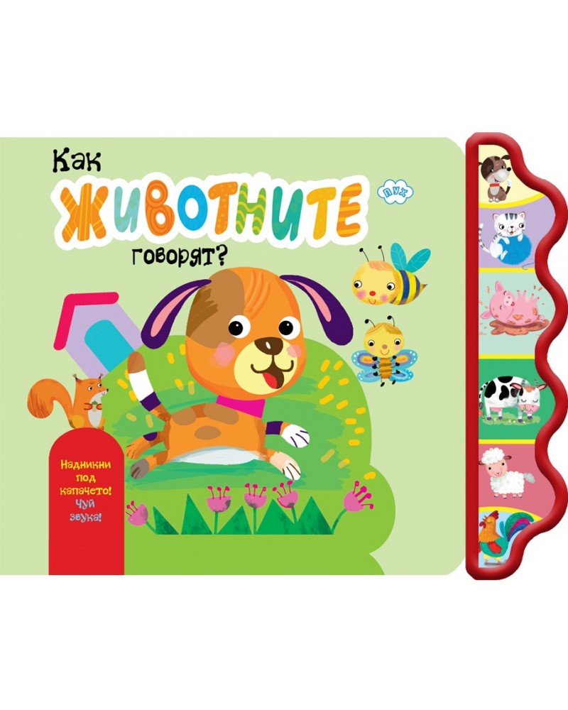 „Как животните говорят: Куче“ е забавна книжка със звуци и текстилни капачета на всеки разтвор.