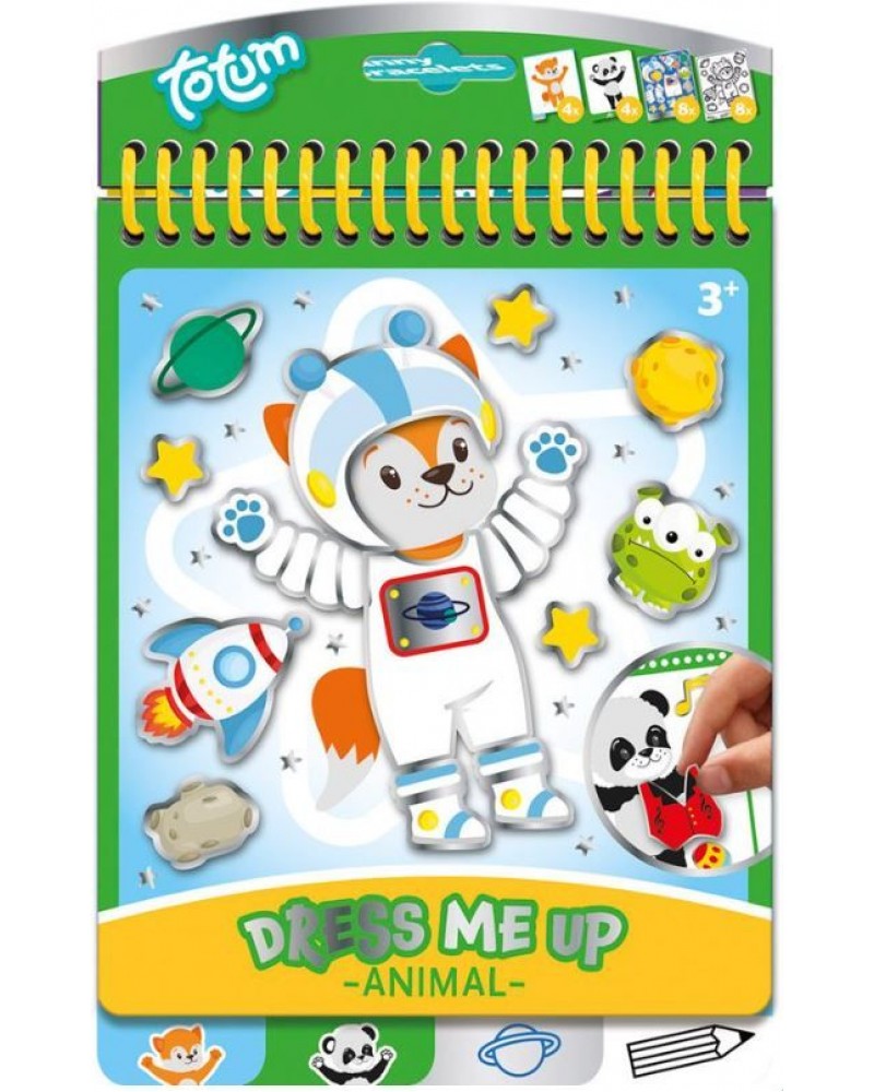 Книжка със стикери Totum - Животни, създайте страхотни шедьоври с комплекта Dress me up Animals на Totum. Комплектът включва всичко необходимо за създаване на въображаеми тоалети за пандата и лисицата.