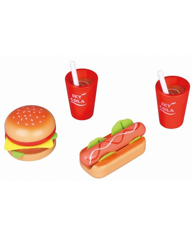 Представяме ви комплект „вкусен обяд“ за двама, произведен от Lelin. В сета се съдържат хамбургер и хот-дог, в комплект с две напитки. Целият сет е изработен от дърво и е предназначен за деца над 3-годишна възраст. Заниманията с комплекта подпомагат развитието на въображението и творческото мислене на децата, а едновременно с това ги забавляват.