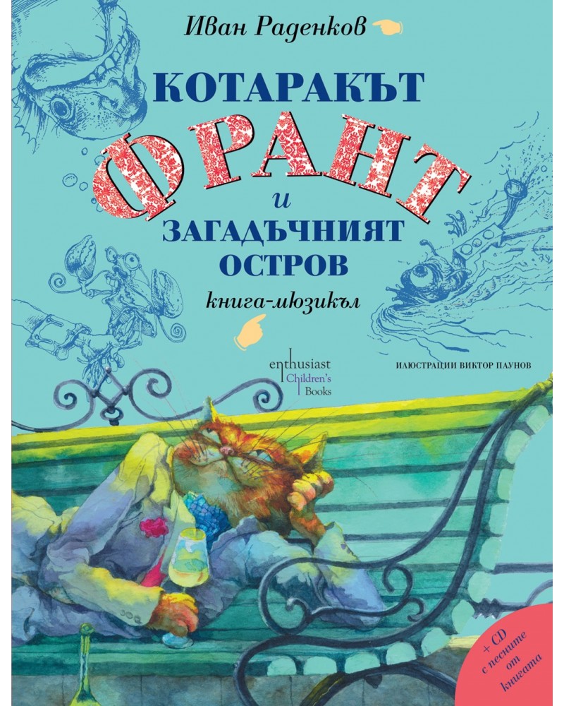 „Котаракът Франт и загадъчният остров“, най-новото заглавие в колекцията с издания за деца на „Ентусиаст“, проследява историята на група чудаци, които преодоляват различията си, за да постигнат една обща цел – да разгадаят мистерията на тайнствения остров и да освободят неговите обитатели. Освен увлекателен разказ за далечни пътешествия и вълнуващи приключения, книгата съдържа авторските илюстрации от проф. Виктор Паунов и диск с 14 детски песни и техните инструментали. Музиката е написана от група „Неутрино Рейс“ и е изпълнена от Вокално-театрална формация „Врабчета“ и Иван Раденков.