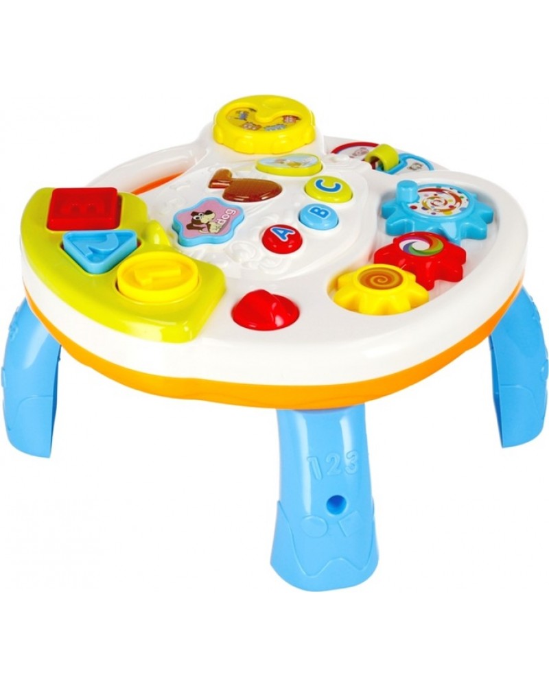 Учебната игрална маса Bam Bam е чудесна играчка, която осигурява забавление за вашето мъниче, като същевременно подпомага всестранното му развитие. С разнообразие от звукови и визуални стимули, тя стимулира сетивата и насърчава изследването и ученето. Бутони, които издават звуци и мелодии, ви позволяват да се научите да разпознавате животински звуци и мелодии, насърчавайки ви да играете и танцувате заедно. Подвижните елементи и възможността за съчетаване на форми подпомагат ръчното, моторното и логическото развитие. Масата осигурява комфорт благодарение на своята стабилност, безопасност и регулируеми крака, което ви позволява да я регулирате според височината на детето си и лесно да я местите.