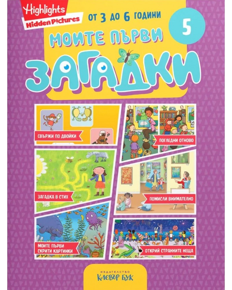 „Моите първи загадки 5“ е създадена за малки изследователи, които обичат да търсят, сравняват, броят и откриват.