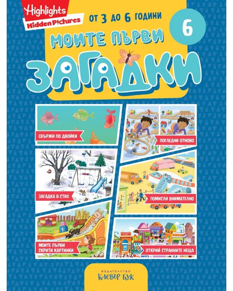„Моите първи загадки 6“ е създадена за малки изследователи, които обичат да търсят, сравняват, броят и откриват.