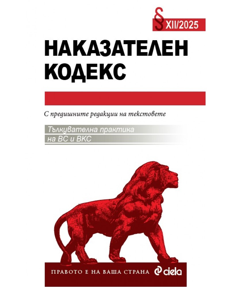 Сборникът „Наказателен кодекс 12/2025“ е актуализиран към 1.12.2025 г.