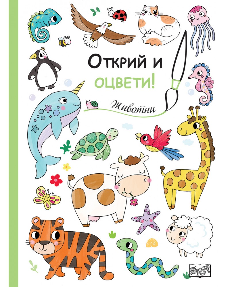 В книгата „Открий и оцвети!: Животни“ ви очакват зайче, което кара сноуборд и къртица с бинокъл, прилеп с нощна шапчица, намигащ дългопет и още много смешни и забавни животни!