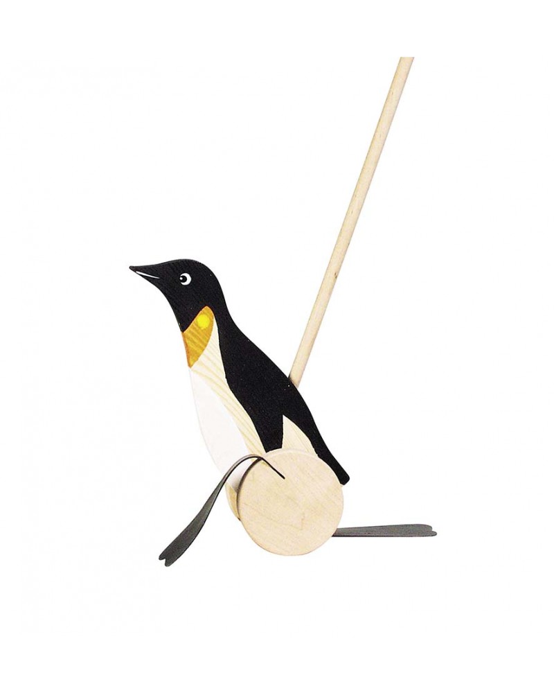 Запознайте се с този симпатичен пингвин, който е част от каталога на Goki. Под формата на играчка за бутане, пингвинчето е с височина от 22 cm. Изработено от дърво и подходящо за прохождащи деца.