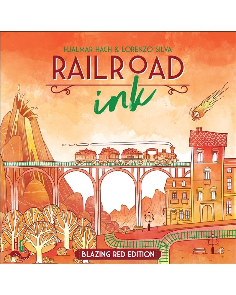 Нови земи са се отворили, а състезанието за направа на най-добрата релсова мрежа започна. В Railroad Ink играчите хвърлят заровете за маршрут и после рисуват резултатите на техните индивидуални бордове. Играчите печелят точки за дълги свързани маршрути, както и за свързани стартови точки плюс маршрути, които минават през центъра на бордовете. Но трябва да се внимава за недовършени маршрути, понеже се губят точки за тях. Blazing Red изданието включва разширенията Лава и Метеор. Опитай се да ограничиш лавата идваща от изригващия вулкан преди да е разрушила маршрутите ти или пък се справи с поразията направена от метеоритните удари и изкопай кратерите за безценна руда. Тези специални правила допринасят за по-интересна игра и да допринесат за различна игра всеки път.