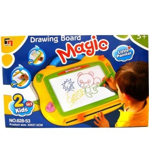 Магическата дъска на Raya Toys е забавна и интересна за малките художници, които с часове ще рисуват и творят. Децата рисуват и пишат посредством приложената писалка, а с едно движение на плъзгащата ръчичка могат да изчистят всичко. Дъската е разделена на четири квадратчета, като всеки е с различен цвят. За да е още по-интересно, в комплекта са добавени няколко печата. Детето ще развие въображението си и с часове ще се занимава.