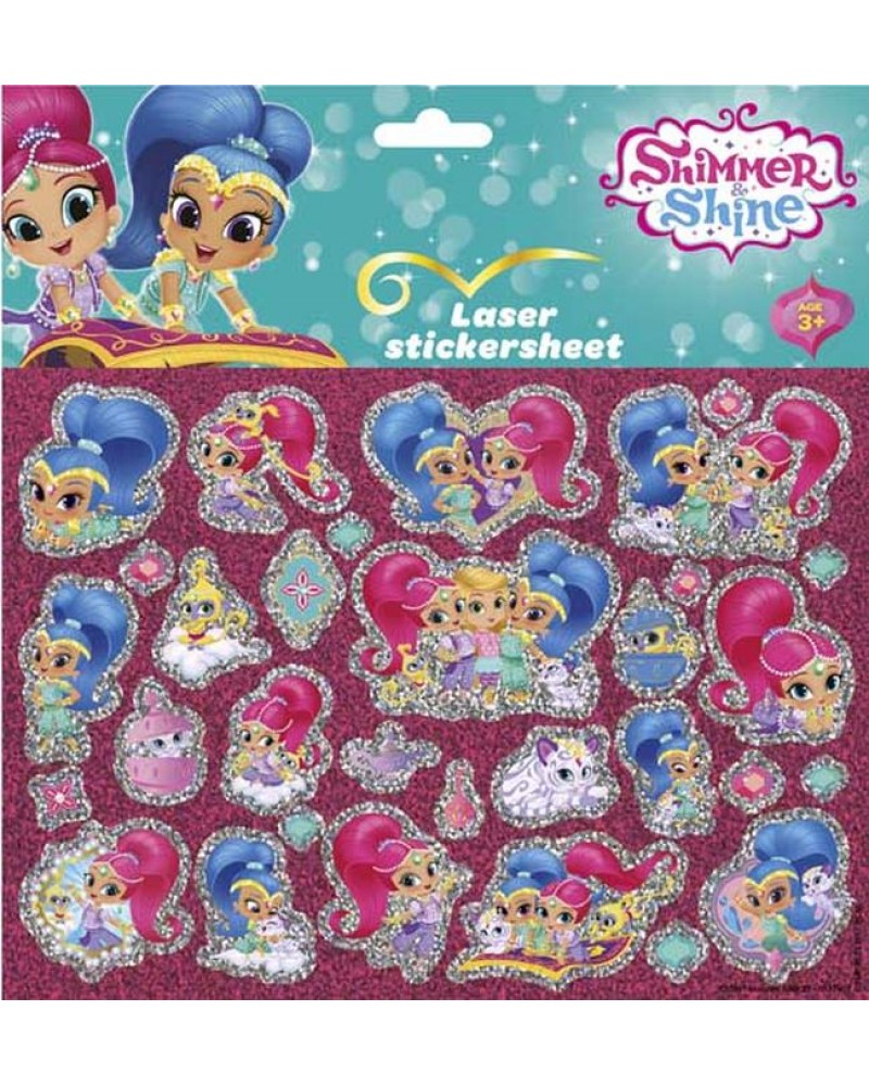 Лист със стикери с героите от Shimmer and Shine, с металически ефект и подложка за залепяне на стикери.