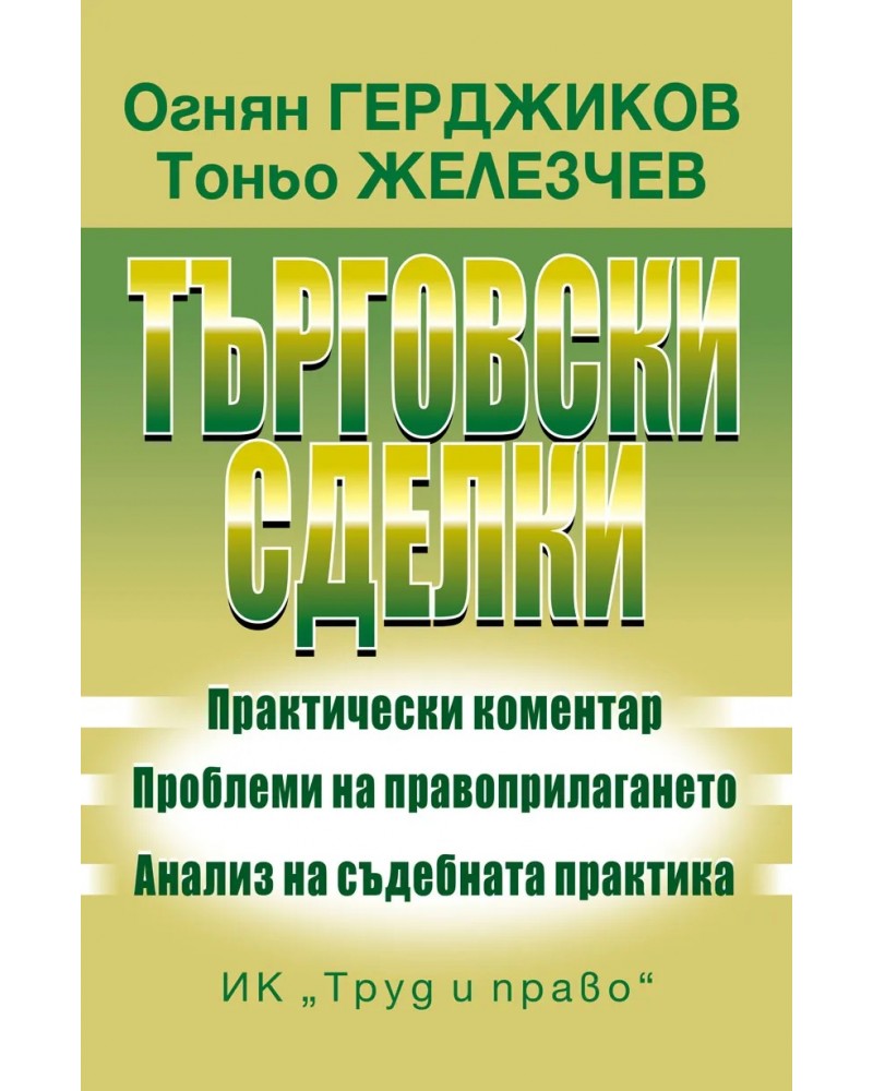 Книгата „Търговски сделки“ представя правната същност на търговските сделки с анализ и коментар на богатата съдебна практика на Върховния касационен съд, както и на знакови решения на Върховния съд и на отделни окръжни съдилища. Съдържанието следва структурата на Търговския закон, като последователно са разгледани видовете търговски сделки с техните специфични характеристики. Проследено е развитието на съдебната практика през годините като задължителна предпоставка за разрешаване на практически казуси и за преодоляване на противоречия, неясноти и непоследователни становища.