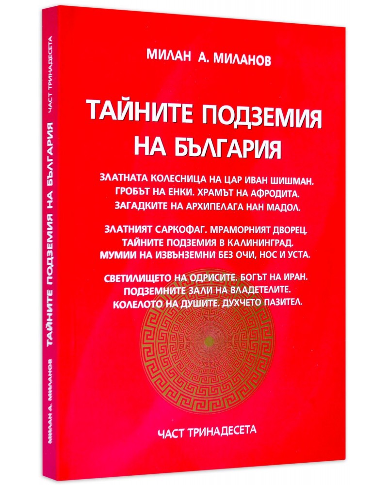 Писателят Милан А. Миланов поднася нова - 13-та част на "Тайните подземия на България", която завладява въображението на читателите с неразгадани досега тайни, съпътстващи живота на хората.